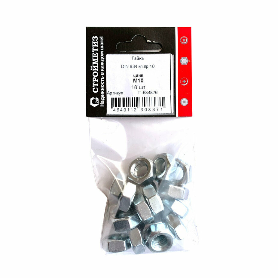 гайка шестигранная DIN934 M10 18 шт Европартнер (12 0578 1)