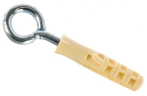 Шуруп, оснащенный кольцом, предназначен для крепления как в мягкие материалы (дерево, пластик и прочие), так и в твердые (бетон, кирпич, другие), но с использованием пластмассового дюбеля соответствующих размеров.