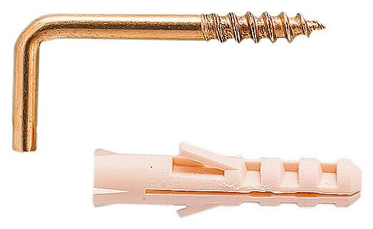 шуруп-крюк L-образный 3х30 мм латунь с дюбелем 4шт Европартнер d3,3хL30 мм 4 шт.