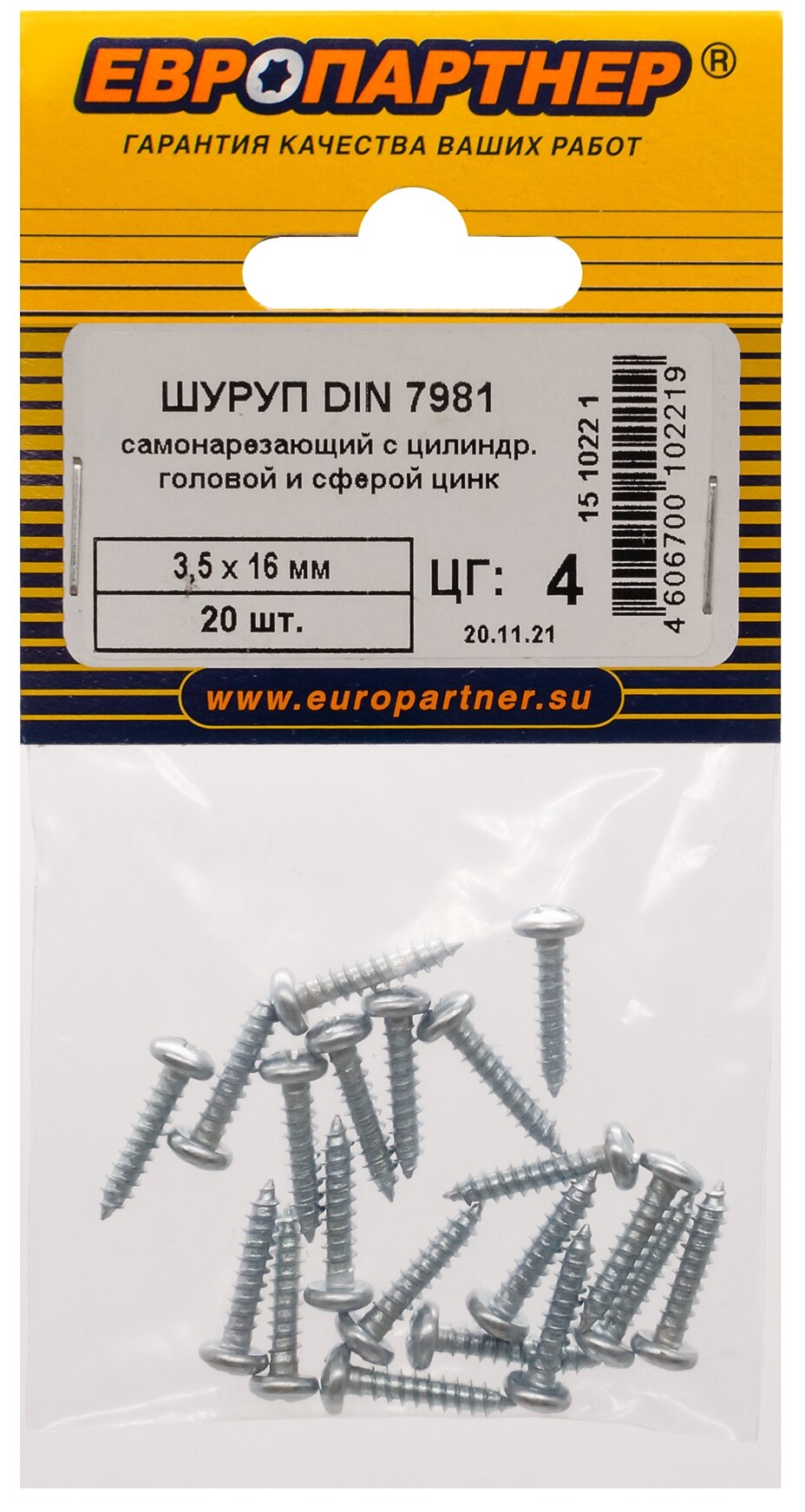 саморез по металлу DIN 7981 35х16мм 20шт Европартнер (15 1022 1)