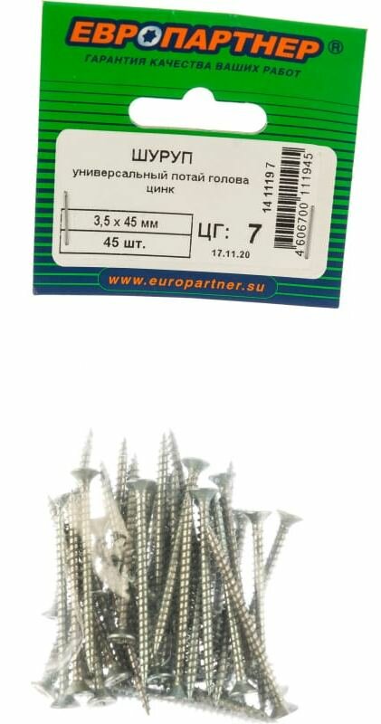 На сегодняшний день товар «саморез универсальный 35х45мм потайная головка 45шт Европартнер (14 1119 7)» можно купить с кешбеком в 1 магазине: Яндекс.Маркет