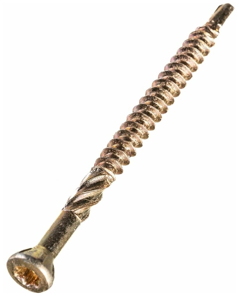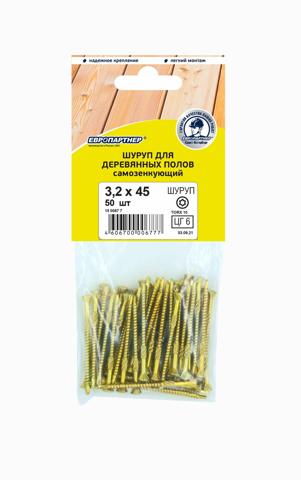 Шуруп деревянных полов Европартнер это специализированный шуруп, который облегчает и ускоряет работу связанную с монтажом деревянных полов. Шуруп с покрытием желтый цинк используется для внутренних работ. Специальная усеченная конструкция шляпки с углом 60 ° обеспечивают незаметное утапливание и прилегание. При монтаже и демонтаже в паз, древесина не раскалывается. Шлиц Torx надежно фиксирует монтажный инструмент и точно передает крутящий момент. Фрезерующие ребра по центру шурупа обеспечивают чистоту в отверстии. Уникальная форма острия со сверлильным наконечником обеспечивают быстрое и надежное ввинчивание. При монтаже шпунтованной доски в паз рекомендуется вкручивать шуруп под углом 50-60 °. В большинстве случаев не требуется предварительное сверление, так как форма резьбы предотвращает расщепление древесины даже при монтаже близко к краю детали. Особенности - Обеспечивают максимальную безопасность и надежность соединений при монтаже- Препятствуют сезонным деформациям деревянных конструкций вследствие естественной влажности или усушки- Исключают скрипы на полу, вследствие наличия на шурупе фрезы и безрезьбовой части