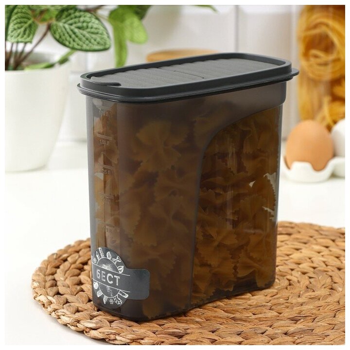 Наведите порядок на полке с сыпучими продуктами!Наши ёмкости позволяют не только организовать пространство в местах хранения, но и с лёгкостью использовать надёжную крышку–дозатор при готовке различных блюд. Рамка крышки выполнена из полиэтилена, поэтому она плотно прилегает к корпусу и не пропускает воздух и запахи.Удобные в использовании ёмкости предназначены для длительного хранения сыпучих продуктов: сахара, кофе, муки, соли, круп, макаронных изделий и многого другого.Конструкция крышки позволяет составлять ёмкости один на другой, тем самым эффективно использовать пространство на полке.Контейнеры для продуктов изготовлены из высококачественного полипропилена, который не содержит Бисфенол–А.Ёмкости подойдут для любого интерьера кухни.Изделия имеют прозрачный корпус.Поэтому всегда видно содержимое и его количество.Ёмкости легко моются. Можно мыть в посудомоечной машине.
