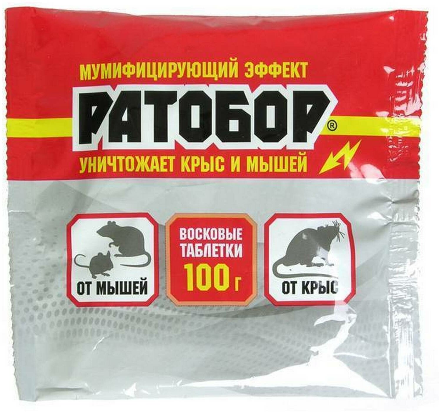 средство от крыс и мышей РАТОБОР восковые таблетки 100г 4607043202161