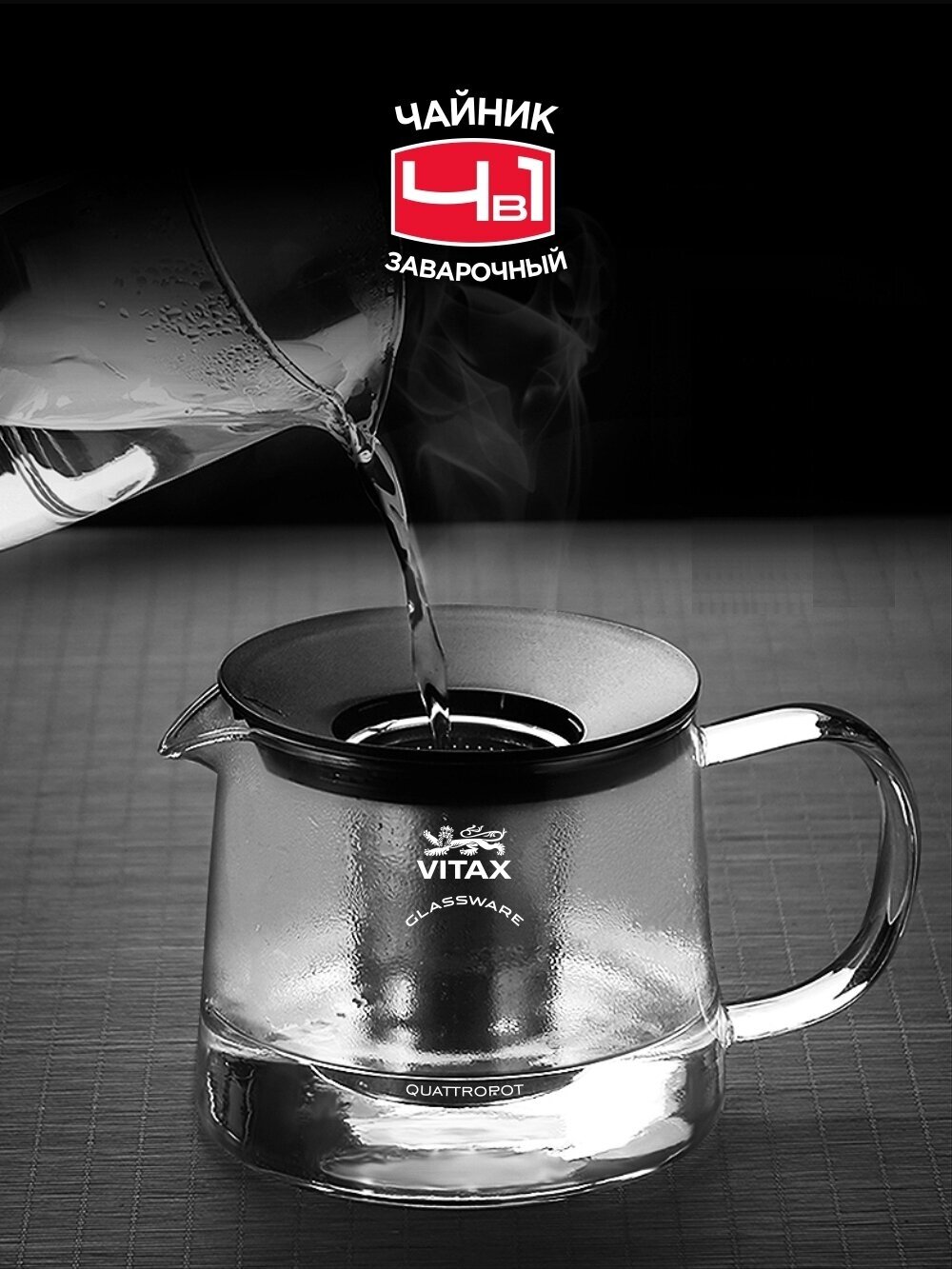 чайник заварочный 4в1 VITAX Warkworth 1500мл круглый термостекло пластик нерж.сталь VX-3308