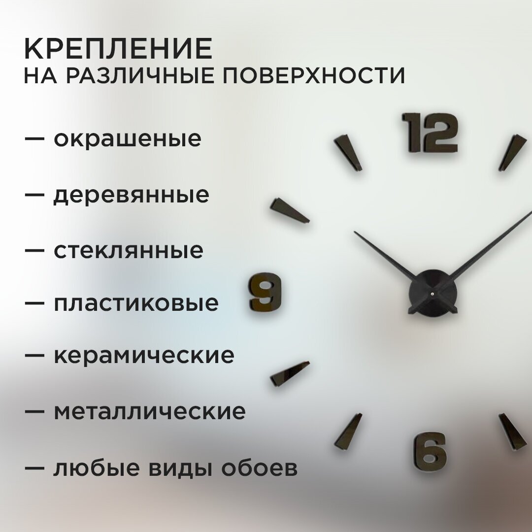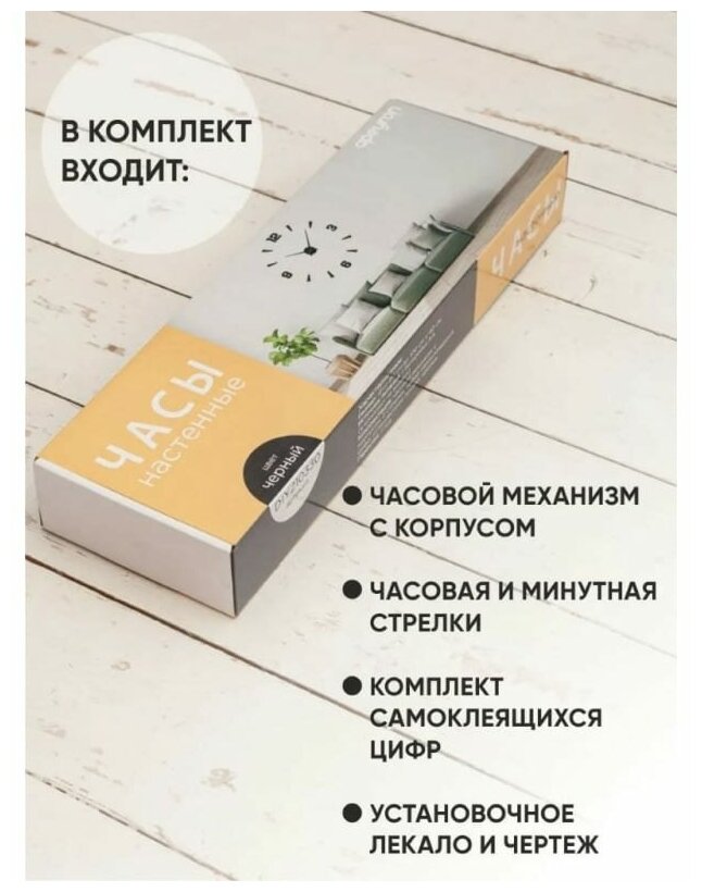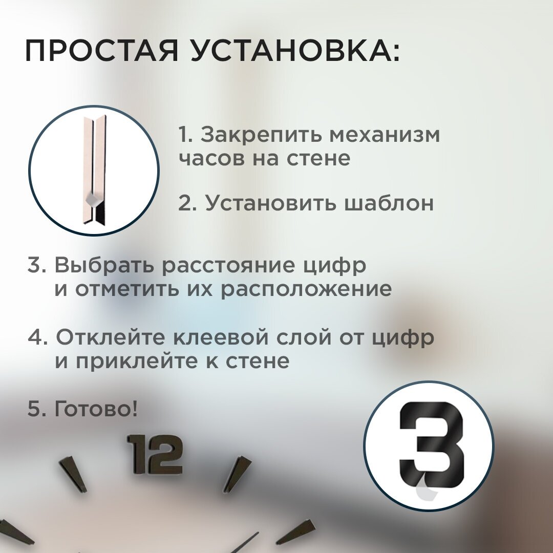 Настенные часы с артикулом -1 выполнены в виде конструктора, с помощью которого можно изготовить свои уникальные часы с рекомендованным диаметром циферблата от 80 см до 100 см. Данная модель представляет собой часы открытого типа с корпусом из металла, материал цифр EVA и акрил. Оригинальный дизайн часов будет великолепно смотреться в любом помещении: на кухне, в детской комнате, спальне, холле, офисе. Циферблатом часов может выступать любая ровная поверхность. В комплект входит часовой механизм с корпусом, часовая и минутная стрелки, комплект самоклеящихся цифр и флуоресцентных наклеек на цифры, установочное лекало и крепеж. Ход часов: шаговый (дискретный). Часы работают от 1 батарейки стандарта АА (не входит в комплект).Преимущества:- Уникальный дизайн.- Оригинальный подарок для друзей и близких.- Металлический корпус.- Редкая замена батареек благодаря экономичному механизму.