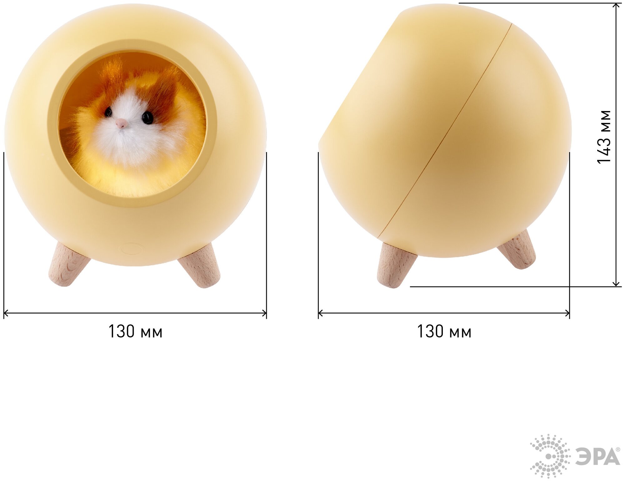 Автономный светильник-ночник ЭРА NLED-468-1W-Y со светодиодами (LED). Ночник выполнен в виде стильного корпуса-домика на деревянных ножках, в котором "живет" пушистый хомячок. Домик светится изнутри. Пушистого хомячка можно вытащить! Внутри светильника хомячок крепится на магнит, будет держаться на любой другой металлической поверхности. Встроенный литиевый аккумулятор для автономной работы. Подзарядка от USB. USB-кабель в комплекте. Плавная регулировка яркости (прикосновением и удерживанием сенсорной кнопки на фронтальной части). Выключатель на корпусе. Светодиодный светильник-ночник ЭРА создаст для Вас уютную подсветку и хорошее настроение!Функциональные преимуществаФункциональные преимущества: Светильник-ночник со светодиодами (LED) в качестве источников света. Дизайн в виде подсвечивающегося "домика" с пушистым хомячком внутри. Хомячка можно вытащить! Автономный, работает от встроенного литиевого аккумулятора. Подзарядка от USB. USB кабель в комплекте. Выключатель на корпусе. Плавная регулировка яркости при помощи сенсорной кнопки.