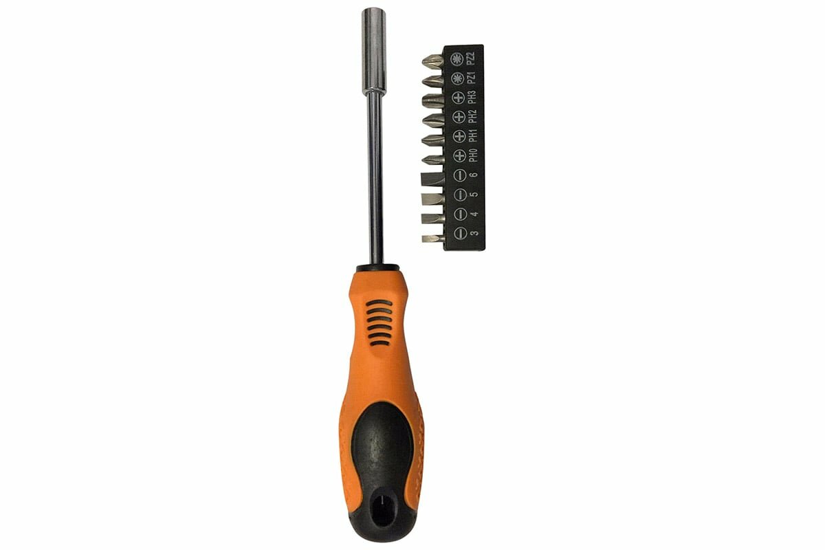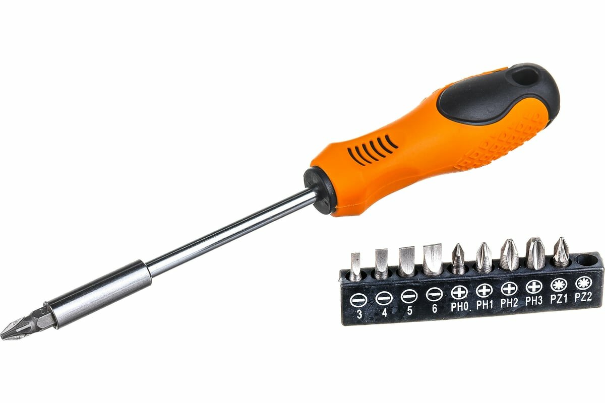 Отвертка с набором бит Park пригодится для эксплуатации в быту, а также в профессиональных целях. Отвертка и биты выполнены из прочной стали. Комплектация: - Отвертка - 1 шт; - Биты: SL3, SL4, SL5, SL6, PH0, PH1, PH2, PH3, PZ1, PZ2 - 10 шт.