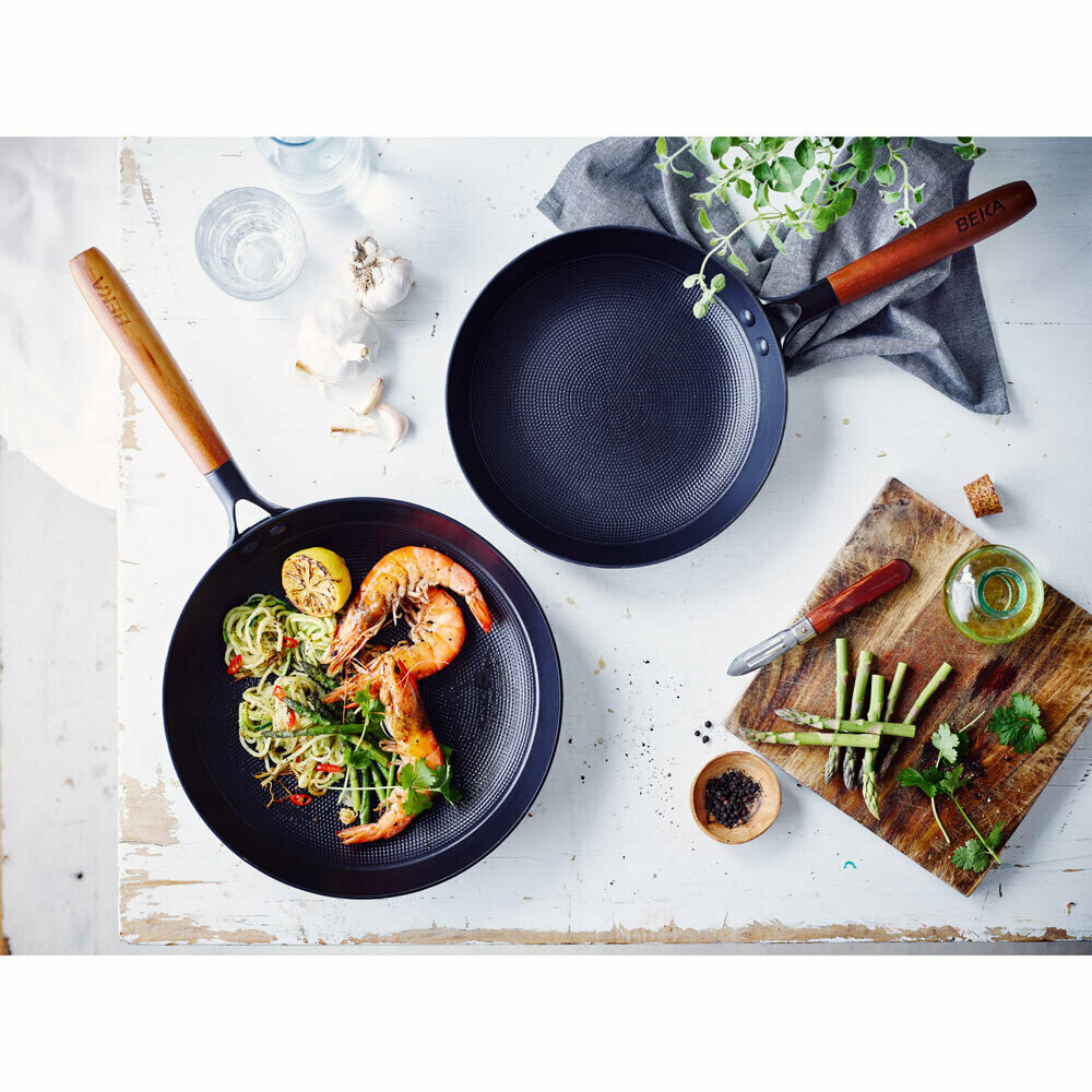 Корпус – чугун, керамическое антипригарное покрытие. Рельефный рисунок на внутренней поверхности – равномерное распределение жира и превосходное качество приготовления. Керамическое антипригарное покрытие – приготовление с меньшим количеством жира. Внешнее эмалированное покрытие позволяет использовать изделие на высокой температуре и даже на барбекю. Очень прочная чугунная сковорода с отличной теплопроводностью. Ручка выполнена из древесины акации – нет необходимости в прихватке. Совместимость: все типы варочных поверхностей, включая индукционные. Не подходит для использования в духовке. Не подходит для мытья в посудомоечной машине.