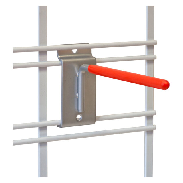 Для хранения ручного и садового инструмента, кабелей и прочего. Подходит для крепления к стене и на рельсовую систему. Максимальная нагрузка: 11 кг. Подвес возможно закрепить обычным крепежом, без использования рейлингов.