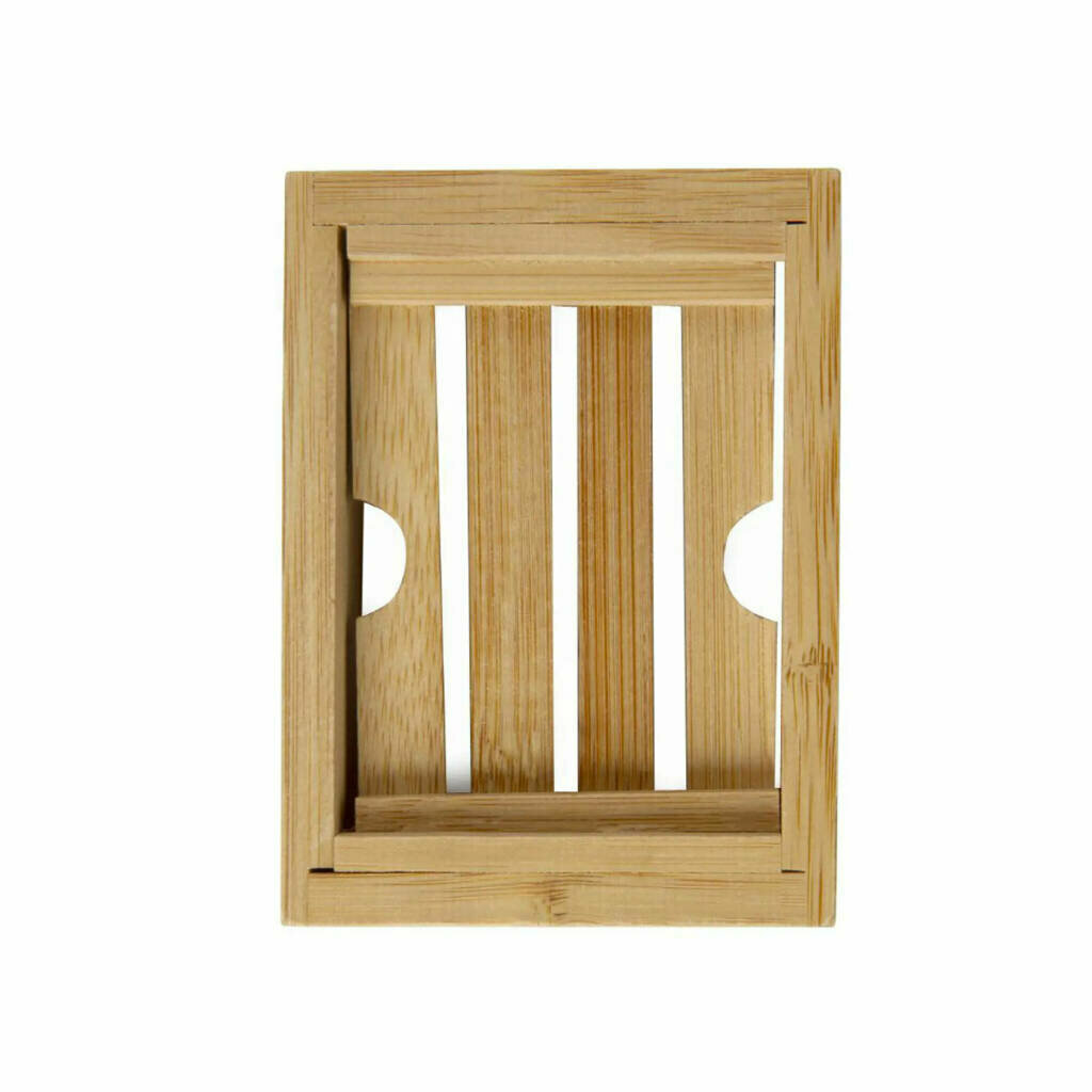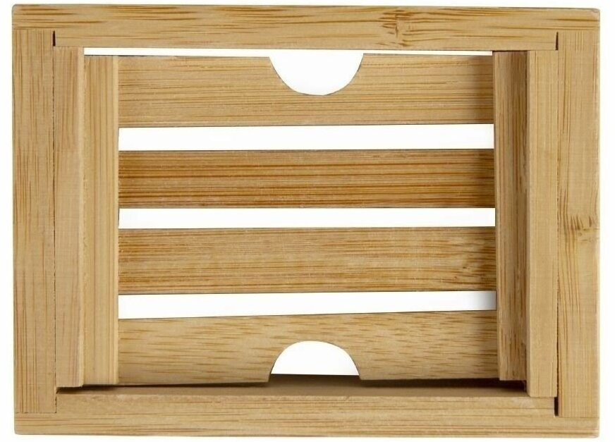 Мыльница настольная прямоугольной формы. Имеет решетчатое дно. Изготовлена из натурального бамбука. Влагоустойчива.