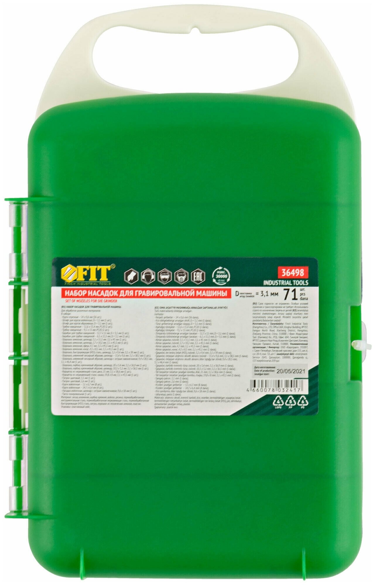 Набор насадок для гравировальной машины FIT 36498 включает насадки для обработки различных материалов.