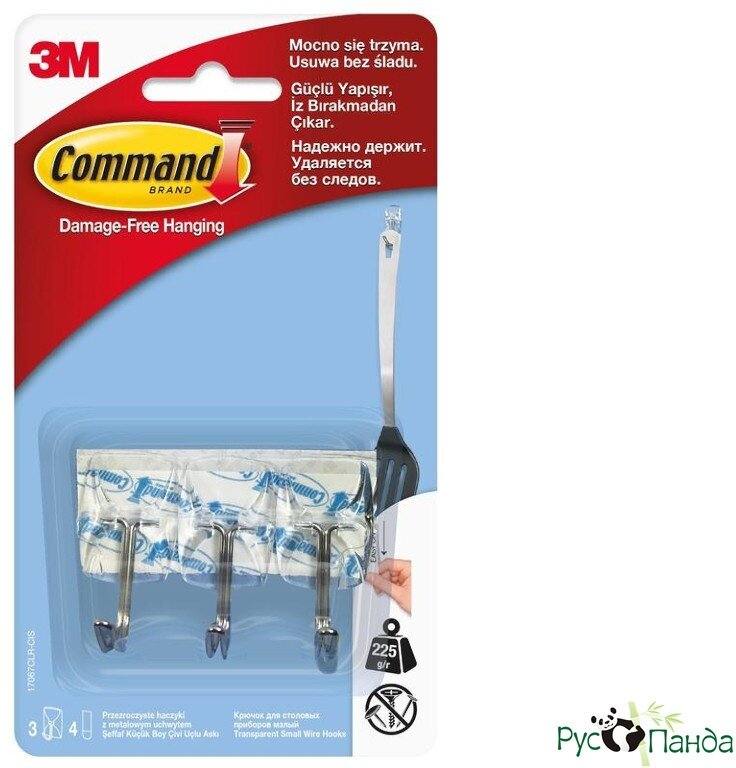крючок для столовых приборов COMMAND прозрачый 3 шт (17067CLR)