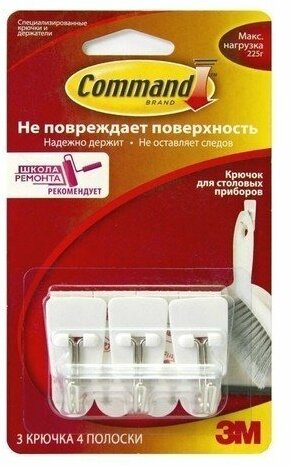 Command — это не просто крючок. Это уникальная адгезивная технология для легкого, надежного и безопасного крепления разнообразных аксессуаров на вертикальной поверхности. Данная система позволяет организовать пространство без применения инструментов и не повреждая поверхности. При необходимости крючок можно удалить, потянув за клейкую полоску. При этом сам крючок можно использовать повторно со сменными полосками Command.