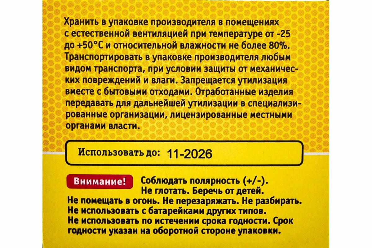 | Элемент | щелочной/алкалиновый(LR) |