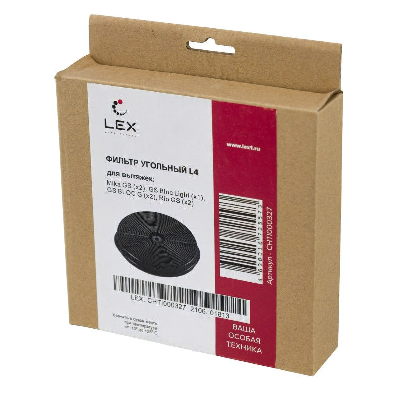 Сменный угольный фильтр для кухонных вытяжек ''Lex''. Подходит для моделей: Кратность замены от 3 до 6 месяцев в зависимости от интенсивности использования вытяжки. Необходим при работе вытяжки в режиме рециркуляции (без вывода в вентиляционный канал).
