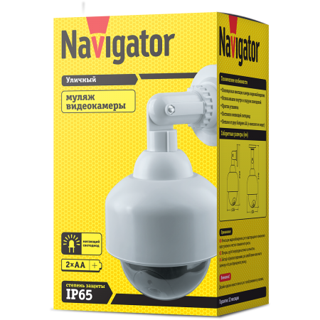 Муляжи видеокамер Navigator серии NMC предназначены для имитации видеонаблюдения. Корпус муляжей полностью идентичен корпусу настоящей видеокамеры и оснащен мигающим красным светодиодом, что позволяетиспользовать их в местах повышенного риска, когда нет острой необходимости в установке действующей системы видеонаблюдения.Питание от двух батареек.Пластиковый корпус, полностью имитирующий камеру видеонаблюдения.Красный светодиод, мигающий каждые 2 секунды.Простая и быстрая установка.Модели NMC-02 и NMC-03 подходят для использования как внутри, так и снаружи помещений
