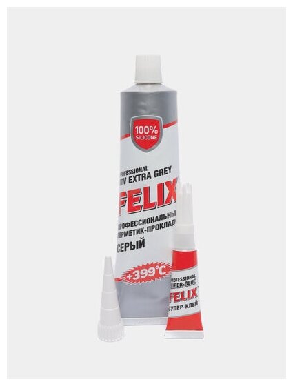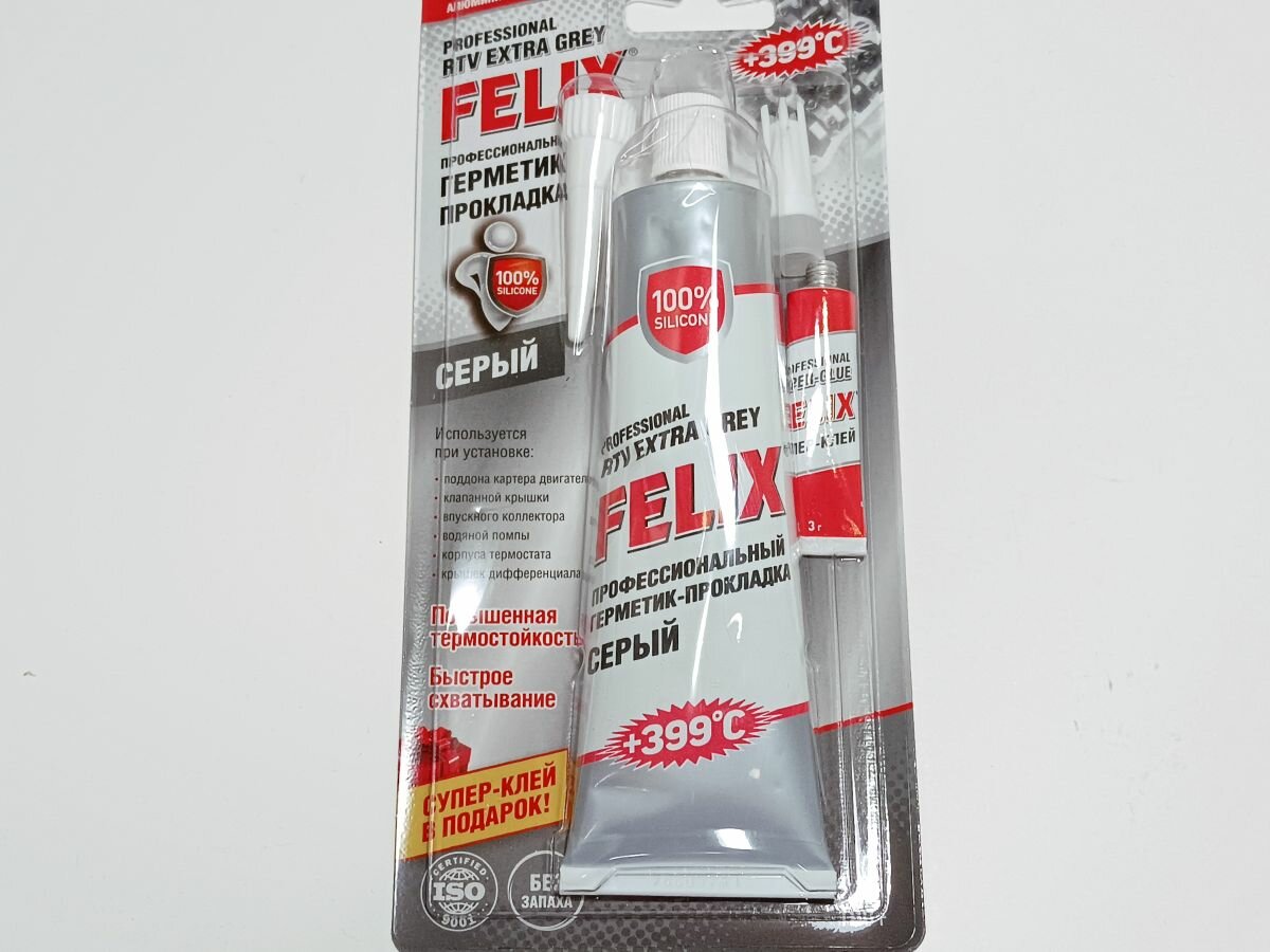 Герметик-прокладка силиконовый серый FELIX (100 г), в состав продукта входит алюминиевая пудра, позволяющая применять герметик в условиях высоких температур или в сильно нагруженных соединениях, при проведении ремонта узлов и агрегатов трансмиссии и двигателя, при установке и ремонте поддона картера двигателя, клапанной крышки, впускного коллектора, водяной помпы, корпуса термостата, крышек дифференциала. Заменяет любые заводские силиконовые прокладочные материалы, штатные твердые и резиновые прокладки. Характеристики: — Область применения: Коробка передач, Прокладки, Двигатель, Резиновые детали — Тип упаковки: Тюбик — Основа: Силикон — Цвет: Серый — Время высыхания, ч: 24 — Макс. температура эксплуатации, °C: +399 — Особенности: Высокотемпературный Термостойкий .