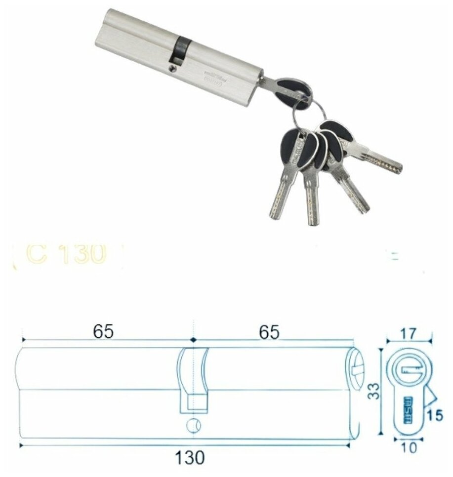 Сервис сравнения цен СкидкаГИД предлагает сравнить цены на товар «цилиндр ключевой MSM 130мм 65+65 матовый никель (C130mm SN)»