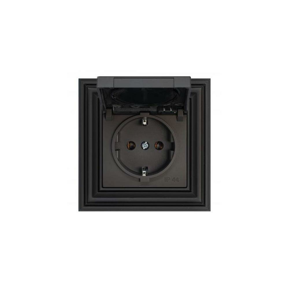 розетка 1 пост LIREGUS Retro с заземлением пруж.матовый черный (29-223)
