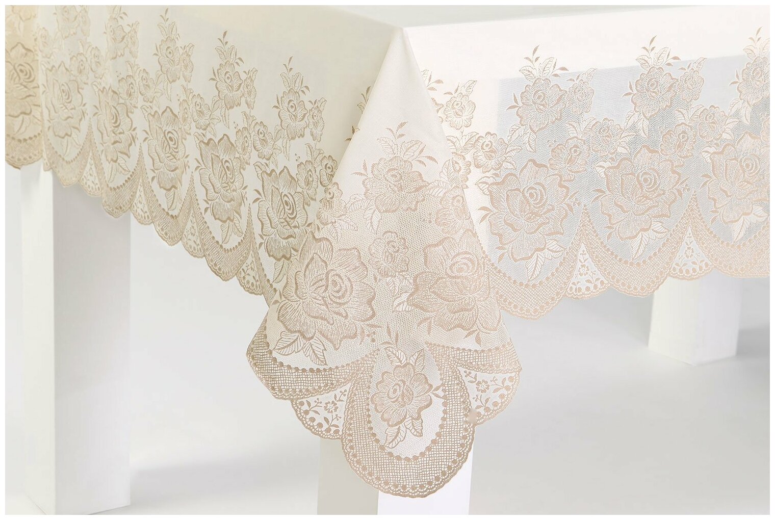 скатерть ПВХ ажурная TOWA 132х177см Marine бежевая арт.5176