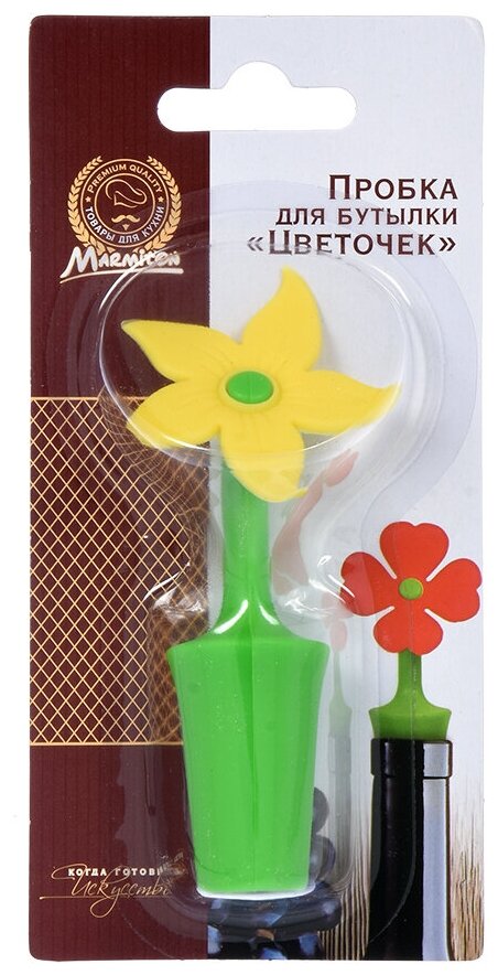 Пробка для бутылки MARMITON Цветочек силикон. Назначение: герметично закрывает открытую емкость с напитком, сохраняя вкус и цвет вина. Материал устойчив к фруктовым кислотам, к воздействию низких и высоких температур. Можно мыть и сушить в посудомоечной машине.