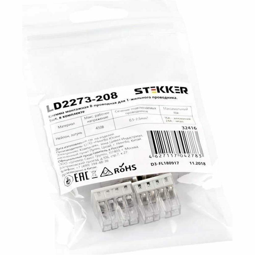 клемма монтажная STEKKER 8-проводная LD2273-208 5 шт (32416)