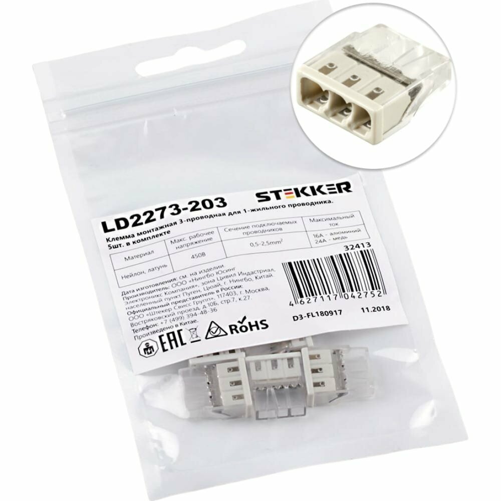 клемма монтажная STEKKER 3-проводная LD2273-203 5 шт (32413)