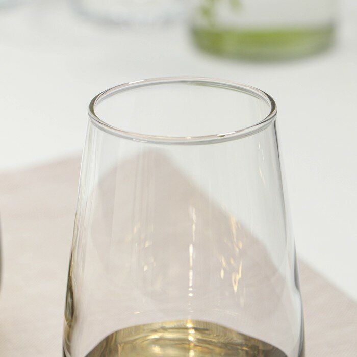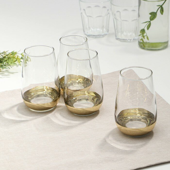 Набор стаканов пригодится как для ежедневного использования, так и для торжественных вечеров. Высокие бокалы объемом 350 мл идут в комплекте 4 штуки. Такой набор станет практичным и нужным подарком на Новый год, на Рождество, на 23 февраля и другие праздники. Изделия выполнены в современном стиле с золотым напылением по низу стакана, что позволяет напиткам в стакане выглядеть еще более привлекательно. Гладкая непористая поверхность защищает от бактерий и попадания микроэлементов пищи. Бокалы стеклянные придадут шарм любому застолью. Стаканы прекрасно сочетаются с другими бокалами из этой серии.