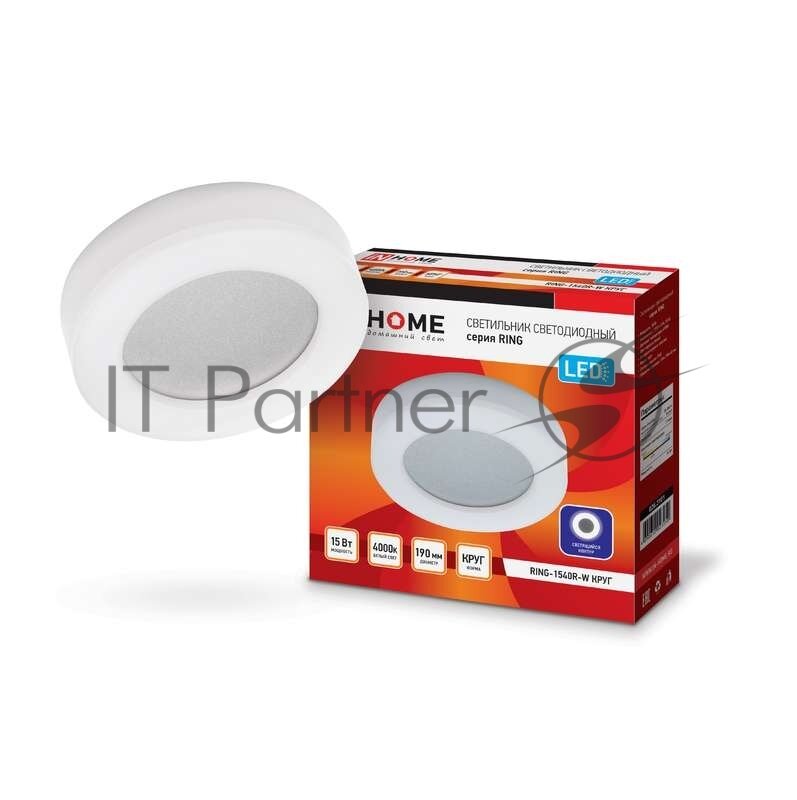 светильник настенно-потолочный In Home RING-1540R-W 15Вт 230В 4000К 910лм 190мм IP65