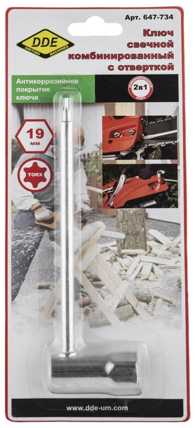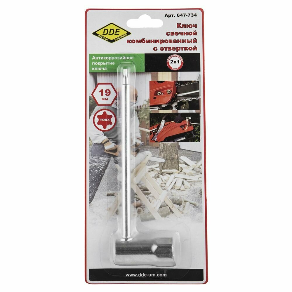ключ свечной комбинированный DDE 19мм (647-734) (размер: 19/Т27)