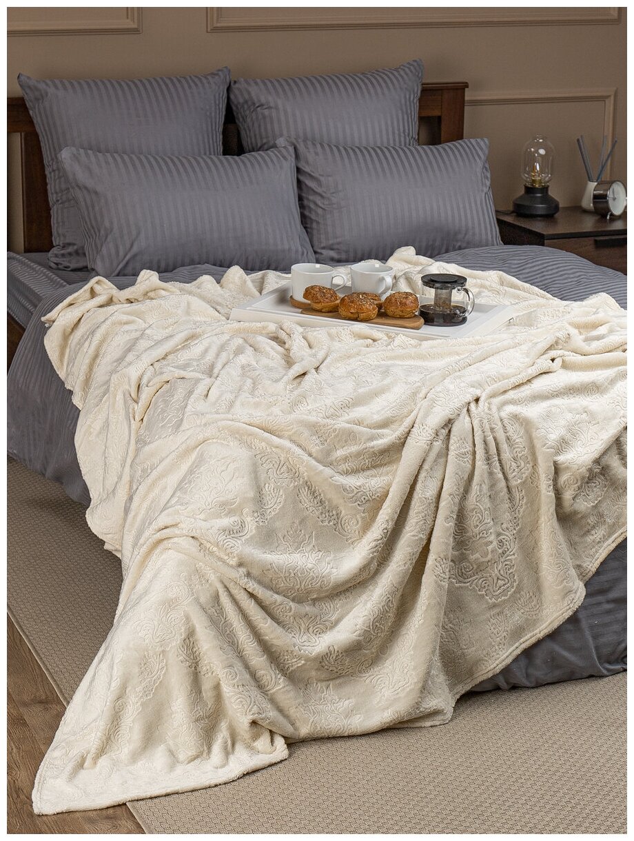 плед TEXREPUBLIC Дамаск 150х200см молочный арт.28889 (размер: 1.5-спальный)
