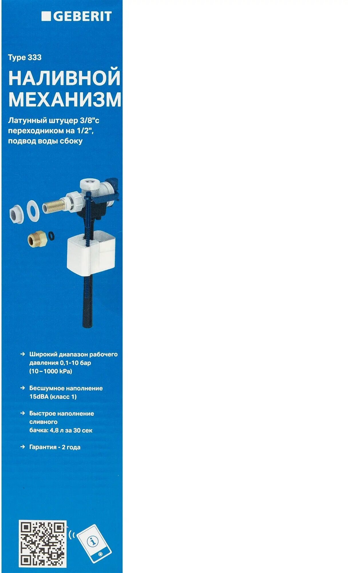 механизм заливной для унитаза GEBERIT тип 333 боковая подводка 136.730.00.3