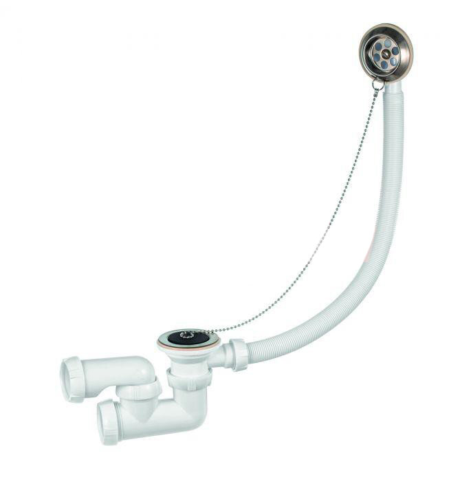 Сифон для ванн — сантехническое изделие со свободным протеканием. Выполнен в форме изогнутой трубки с коленом для слива воды, оборудован выпуском с решеткой. Слой воды в колене препятствует появлению запаха из канализации. При выборе сифона учитывается размер свободного пространства под ванной.