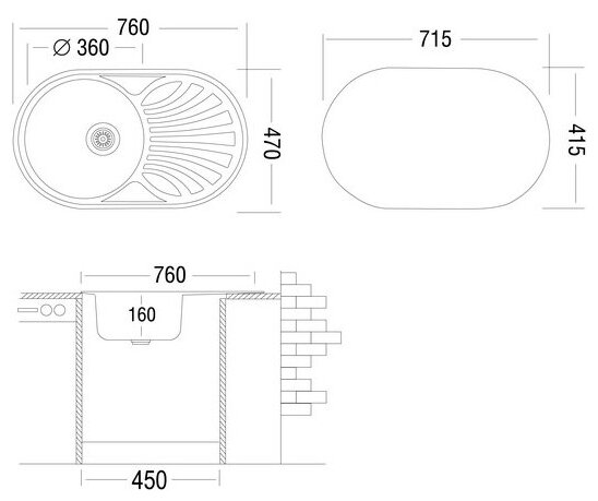 | Толщина материала мойки | 0.6 |