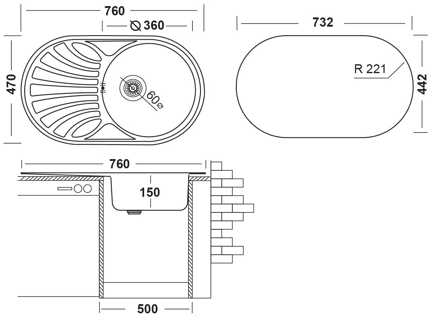 | Толщина материала мойки | 0.6 |