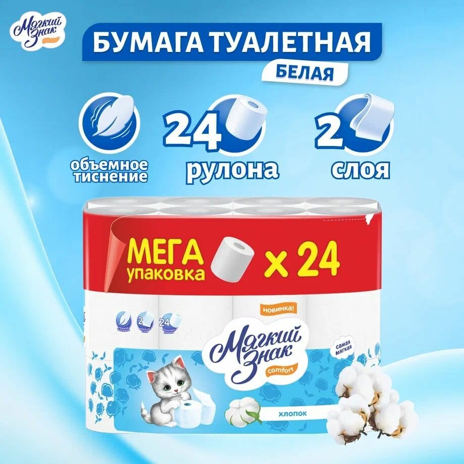 Сервис сравнения цен СкидкаГИД предлагает сравнить цены на товар «бумага туалетная МЯГКИЙ ЗНАК 24 шт./уп. 2-сл 130 листов без аромата (С144)»