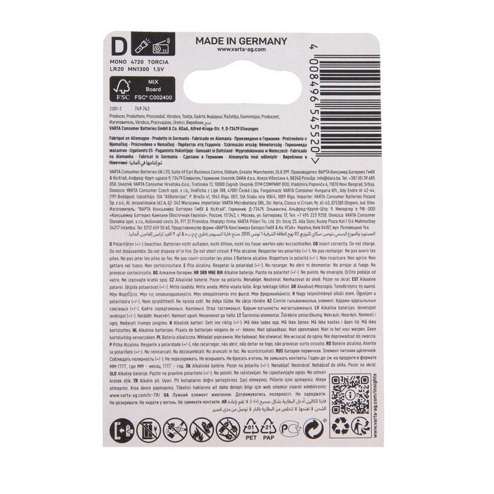 | Модель | Varta LONGLIFE MAX POWER (MAX TECH) LR20 |
