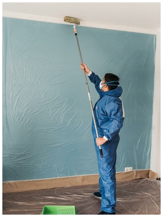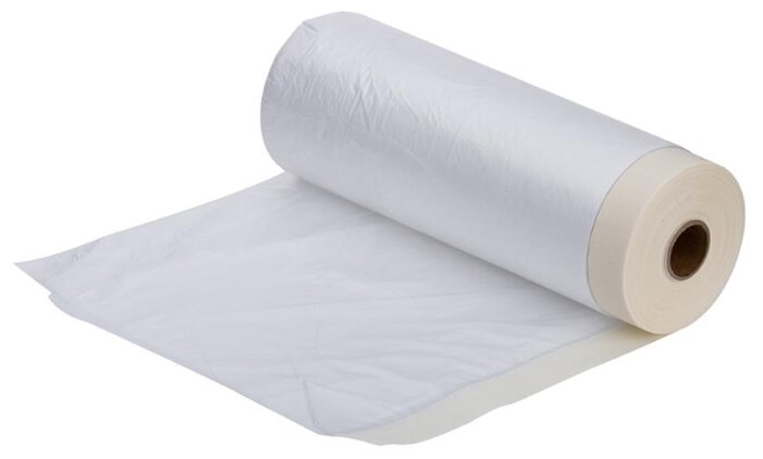 Пленка защитная с крепп лентой предназначена для защиты различных поверхностей от пыли, грязи, краски при проведении строительно-ремонтных работ. Способ и рецепт производства пленки обеспечивает возможность ровного отрыва, без использования резака, ножа, это дает возможность работать на высоте одному человеку. Пленка имеет отрицательный заряд, что обеспечивает ее плотное прилегание даже к поверхности с отрицательным углом в условиях проветривания.
