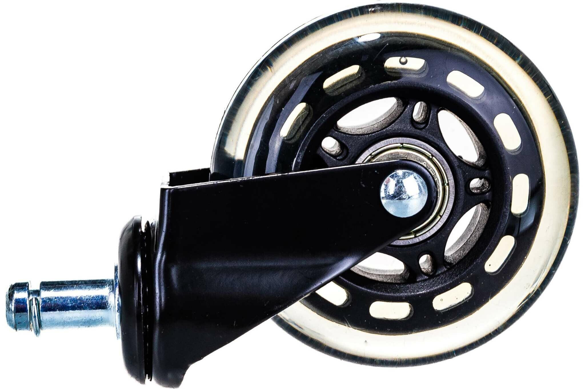 Полумягкие модели с силиконовым покрытием. Такие ролики для офисных и компьютерных кресел идеально подходят для эксплуатации на паркете, ламинате, плитке и других твердых поверхностях, поскольку являются практически бесшумными и не оставляют следов. А вот на ковровом покрытии они могут затруднить передвижение мебели.