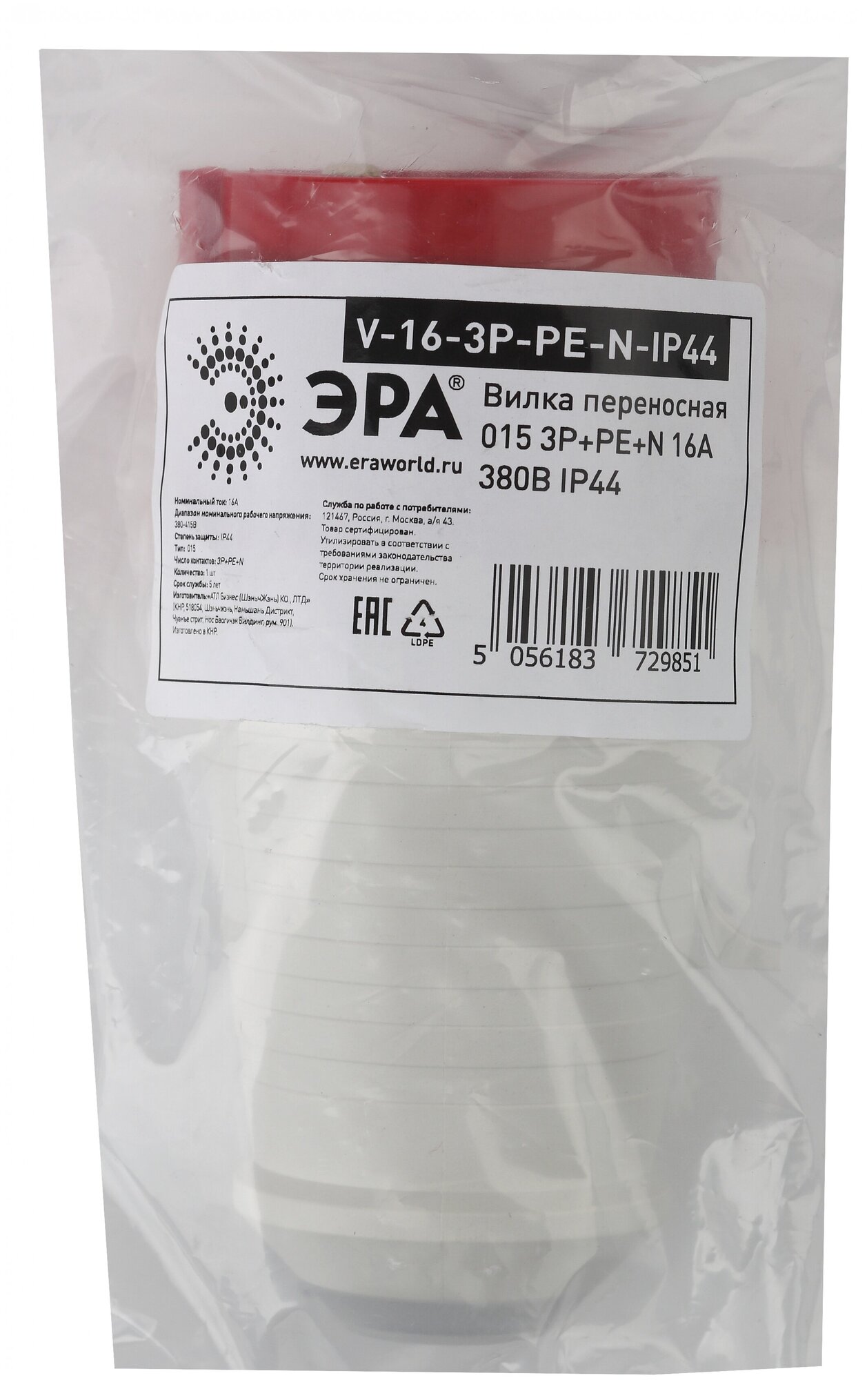 вилка силовая кабельная ЭРА 3Р+Е+N 16А 380В IP44 красный (Б0032851)
