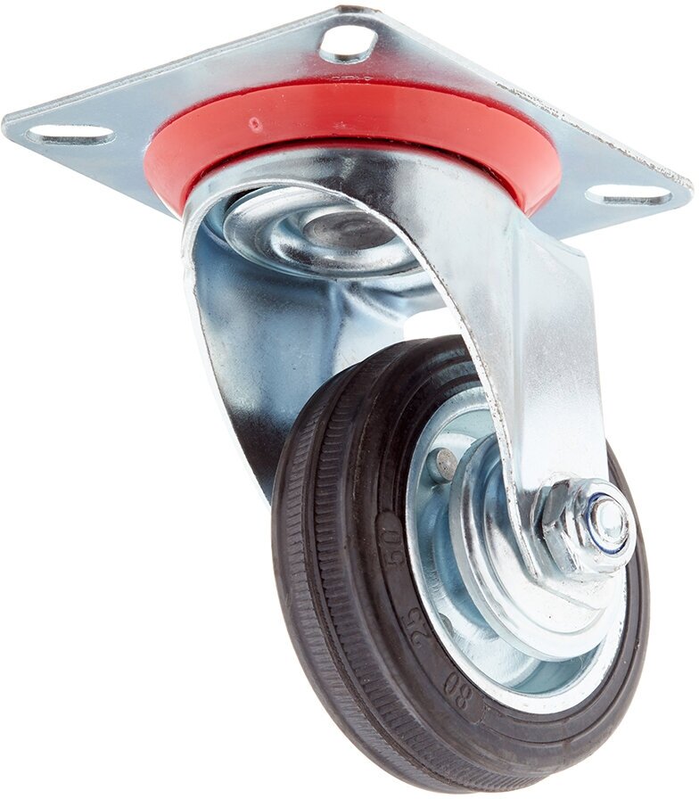 колесо 80мм поворотное на площадке резина Стройбат (349750)