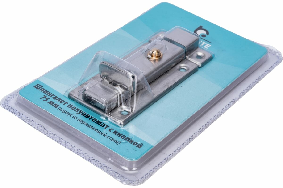 задвижка полуавтомат 75мм нерж сталь с кнопкой Brante (150164)