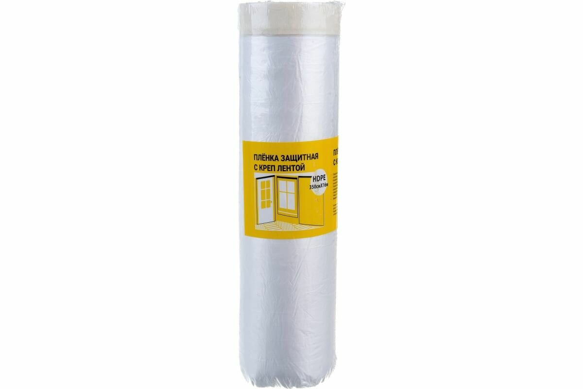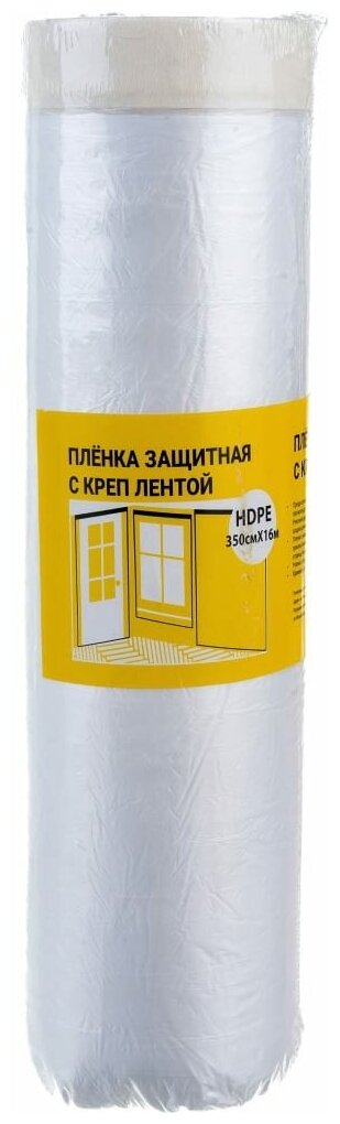 Пленка защитная с крепп лентой предназначена для защиты различных поверхностей от пыли, грязи, краски при проведении строительно-ремонтных работ.Способ и рецепт производства пленки обеспечивает возможность ровного отрыва, без использования резака, ножа, это дает возможность работать на высоте одному человеку. Пленка имеет отрицательный заряд, что обеспечивает ее плотное прилегание даже к поверхности с отрицательным углом в условиях проветривания.