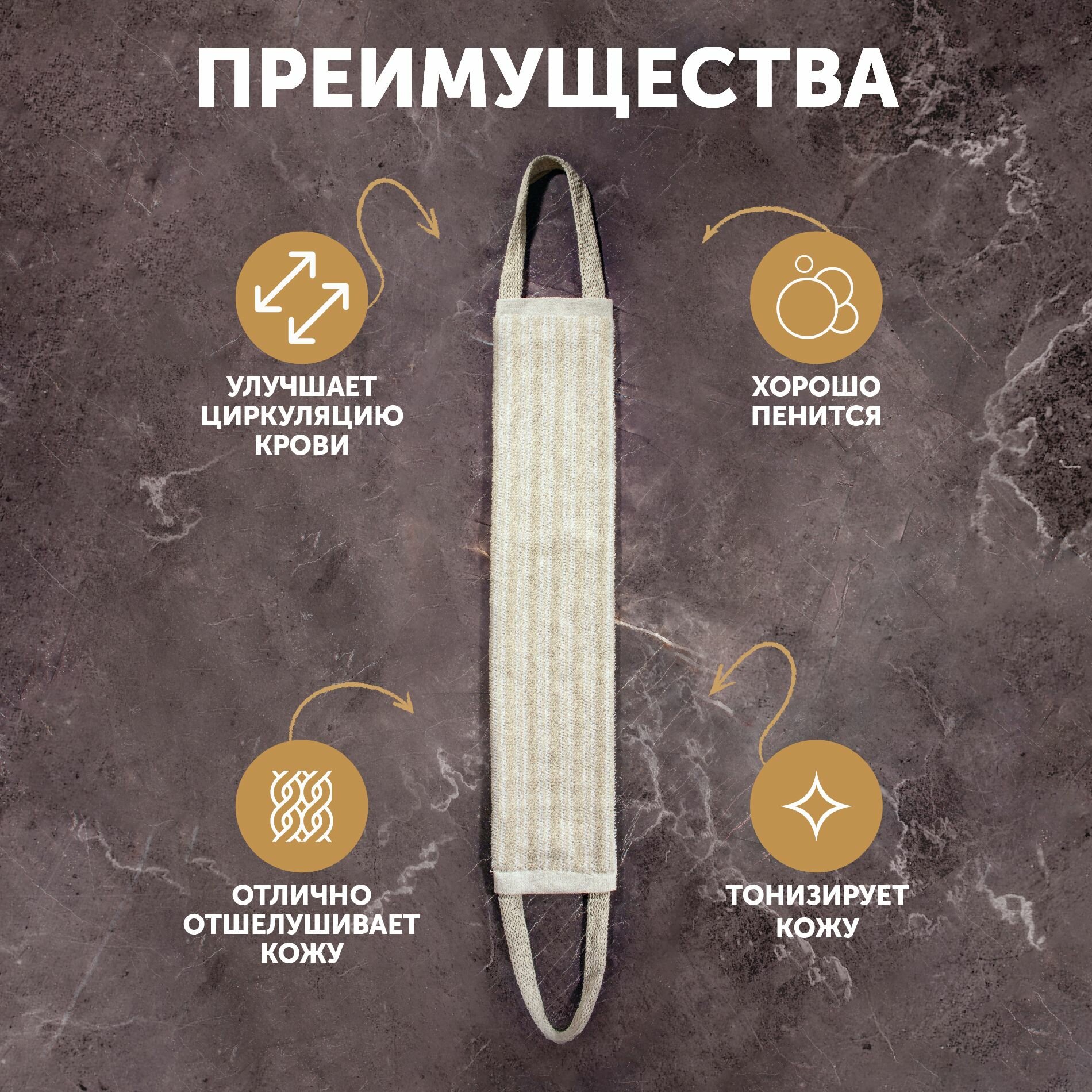 Бережно очищает и массажирует. Оказывает на кожу благоприятный, оздоровительный и тонизирующий эффект. Длина мочалки 50 см. Способ применения: Перед первым применением мочалку необходимо промыть в теплой воде. Возможно использование с мылом или гелем для душа. После применения необходимо промыть под струей воды, отжать и высушить.