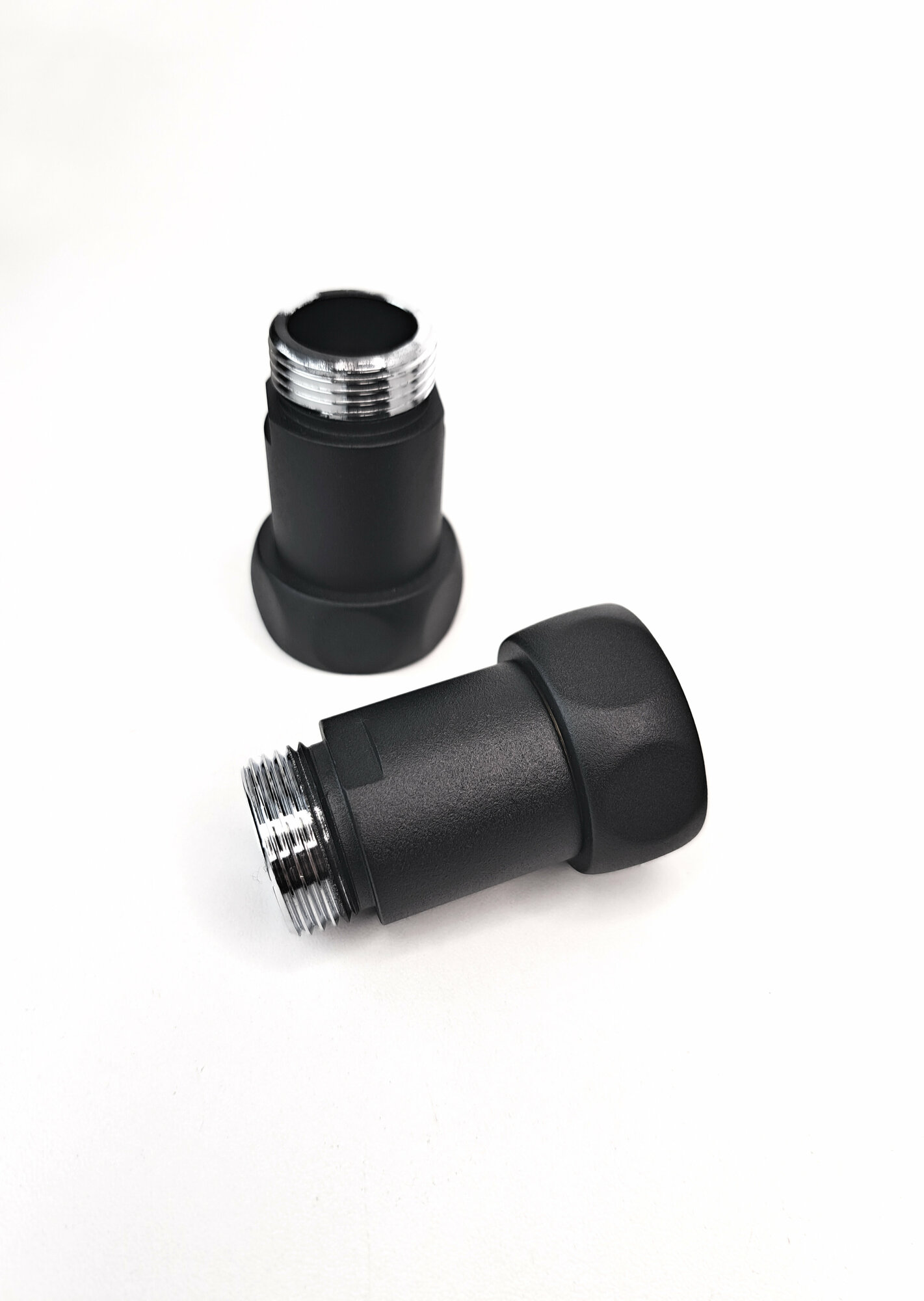 Соединение прямое для полотенцесушителя. Тип соединения: гайка/штуцер. Диаметр подключения: 1"х3/4". В комплекте так же два отражателя.Цвет Черный муар.
