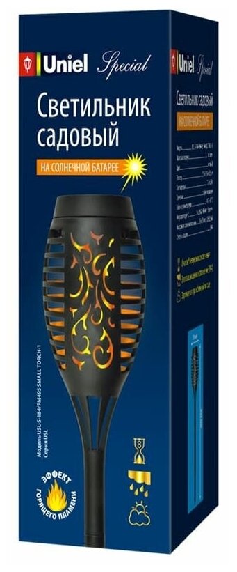 светильник садовый на солнечной батарее UNIEL Small Torch-1 5Вт IP44 черный (USL-S-184/PM495)
