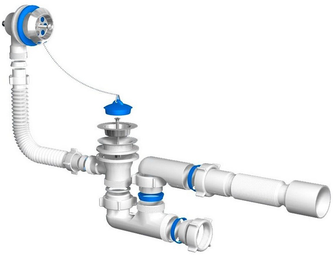 Сифон для ванны с переливом предназначен для отведения воды в систему канализации, препятствует проникновению в помещение неприятного запаха из канализационной системы, а также звуков льющейся воды в канализационном стояке. Сифон можно устанавливать на стальные, чугунные, акриловые и другие ванны. Изготовлен по современной технологии из лёгкого и прочного полипропилена, что обеспечивает его надёжность и долгий срок службы. Сифон укомплектован выпуском с решеткой из нержавеющей стали, пробкой на цепочке и гибкой трубой. Надёжное герметичное соединение, универсальность, практичность, хорошее качество по доступной цене.