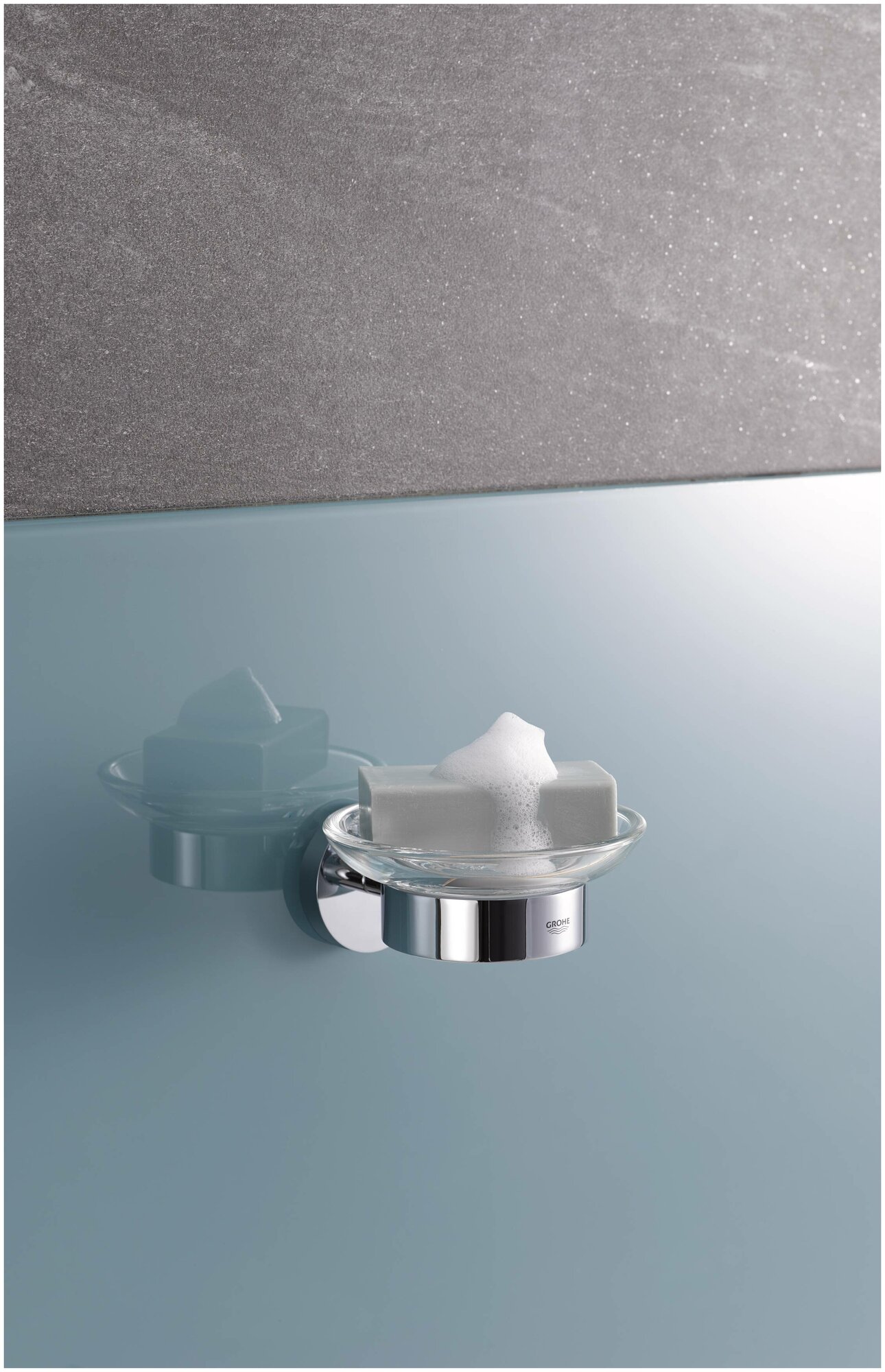 Через сайт мойо купила в ванную набор аксессуаров от люксового немецкого бренда Грохе Эссеншиалс 40344001, который идеально вписался в интерьер комнаты. В комплект вошли: держатель для бумаги, полотенец (в виде кольца и еще один для большого полотенца), крючок-держатель на стену, мыльница. Крепится все довольно просто и намертво. Мыльница самовольно не скользит по раковине. Хромированный металл блестит при включении света. Зеркальная поверхность создает особую атмосферу. На удивление, поверхность долго не покрывается налетом. Но даже если и загрязнится, легко полируется мыльной тряпочкой или другим моющим.