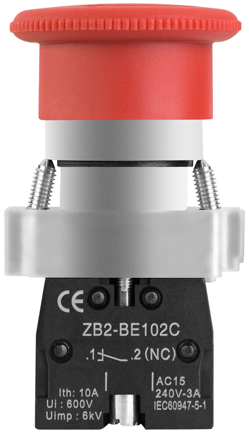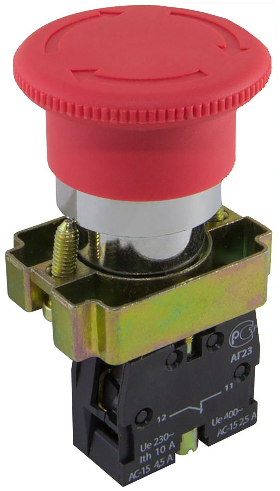 **Кнопка «Грибок» без подсветки** — Кнопка управления красного цвета с номинальным напряжением 660В предназначена для управления контакторами и реле автоматики в электрических цепях.